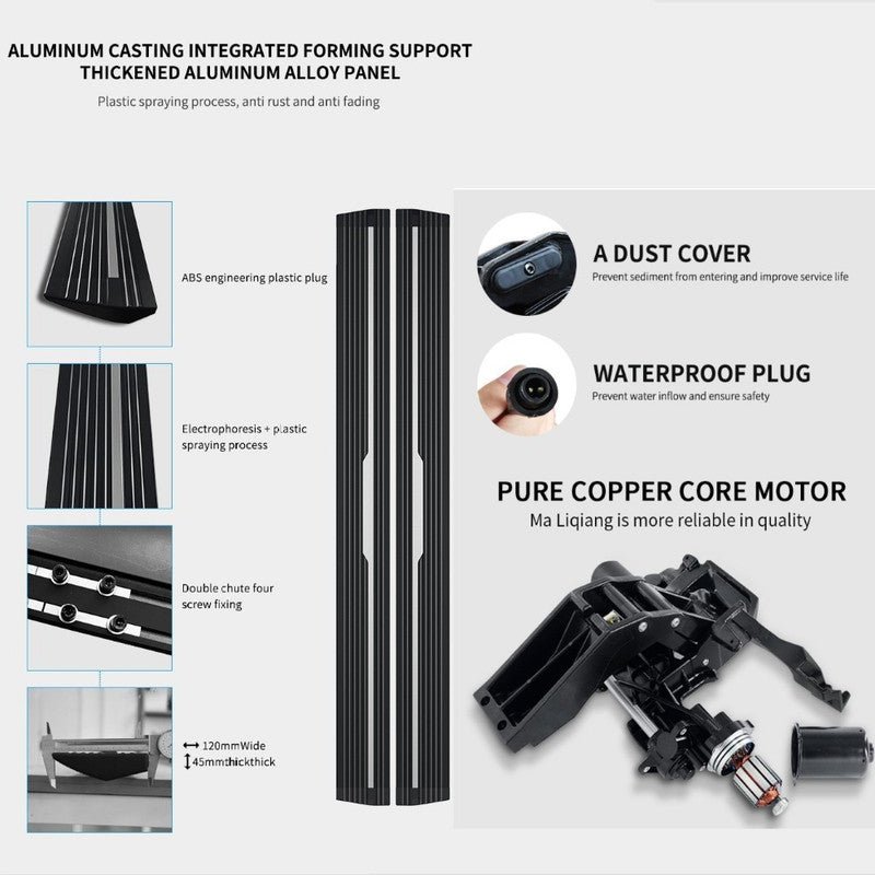 Upgrade Your Ride: Enhance your Land Rover Velar (2021+) with our Automatic Deployable Electric Side Steps. These retractable ladder pedal running boards offer an OEM style that seamlessly blends with your vehicle.