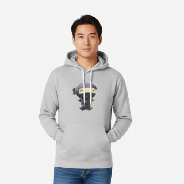 The Chibi Ninja Graphic Hoodie is designed for those who appreciate comfort and playful design. The light gray heather fleece provides a soft, warm feel, making it the perfect layer for chilly days or evenings. The main attraction is the vibrant, cheerful cartoon ninja graphic, which is printed using durable methods to ensure the colors remain bright and clear. It’s an excellent way to express your personality while staying incredibly comfortable.