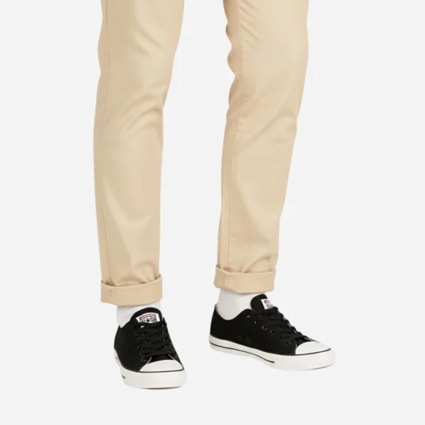 The Coastal Low-Top Sneakers are designed to be your go-to shoe, seamlessly transitioning from a casual office environment to weekend outings. The canvas material ensures your feet stay cool and comfortable, while the contrasting brown leather details around the lace holes and collar elevate the look beyond typical sneakers. The shoe provides excellent cushioning and flexibility for all-day wear.