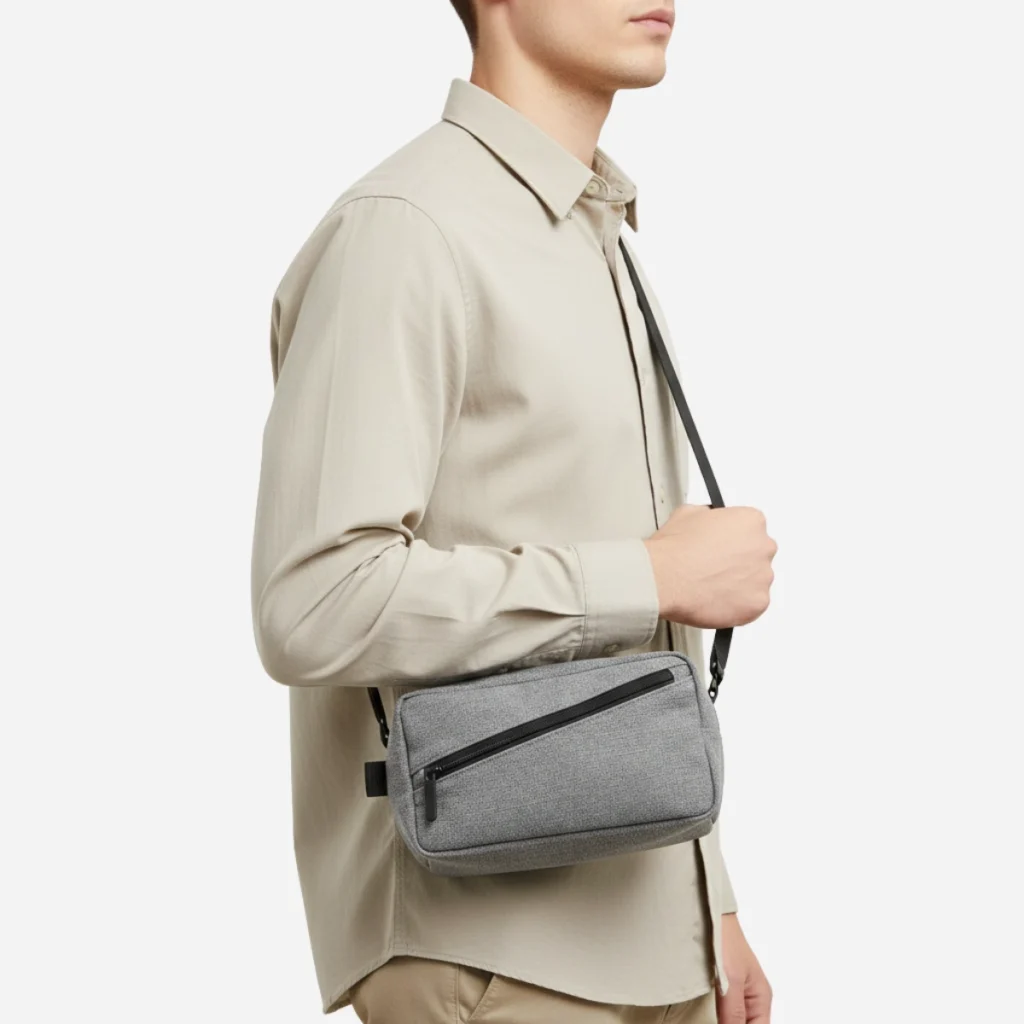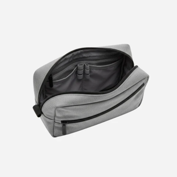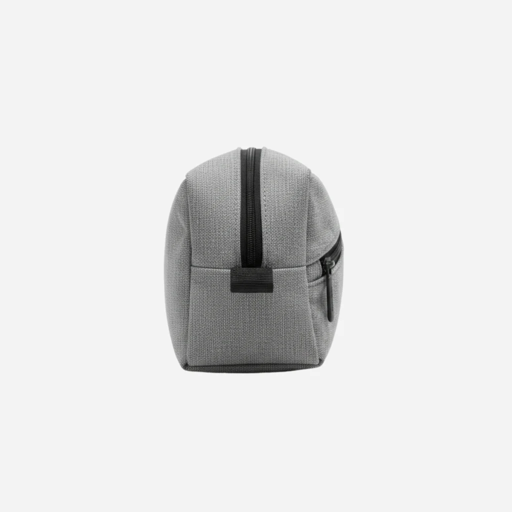 The Minimalist Canvas Tech Pouch is the ideal companion for the modern traveler or commuter. Crafted with a heathered light gray material that resembles canvas, it offers a sophisticated yet casual look. The asymmetrical diagonal zipper not only adds a unique design element but also provides quick, secure access to frequently used items. This pouch is designed to protect your small electronics from daily wear and tear.